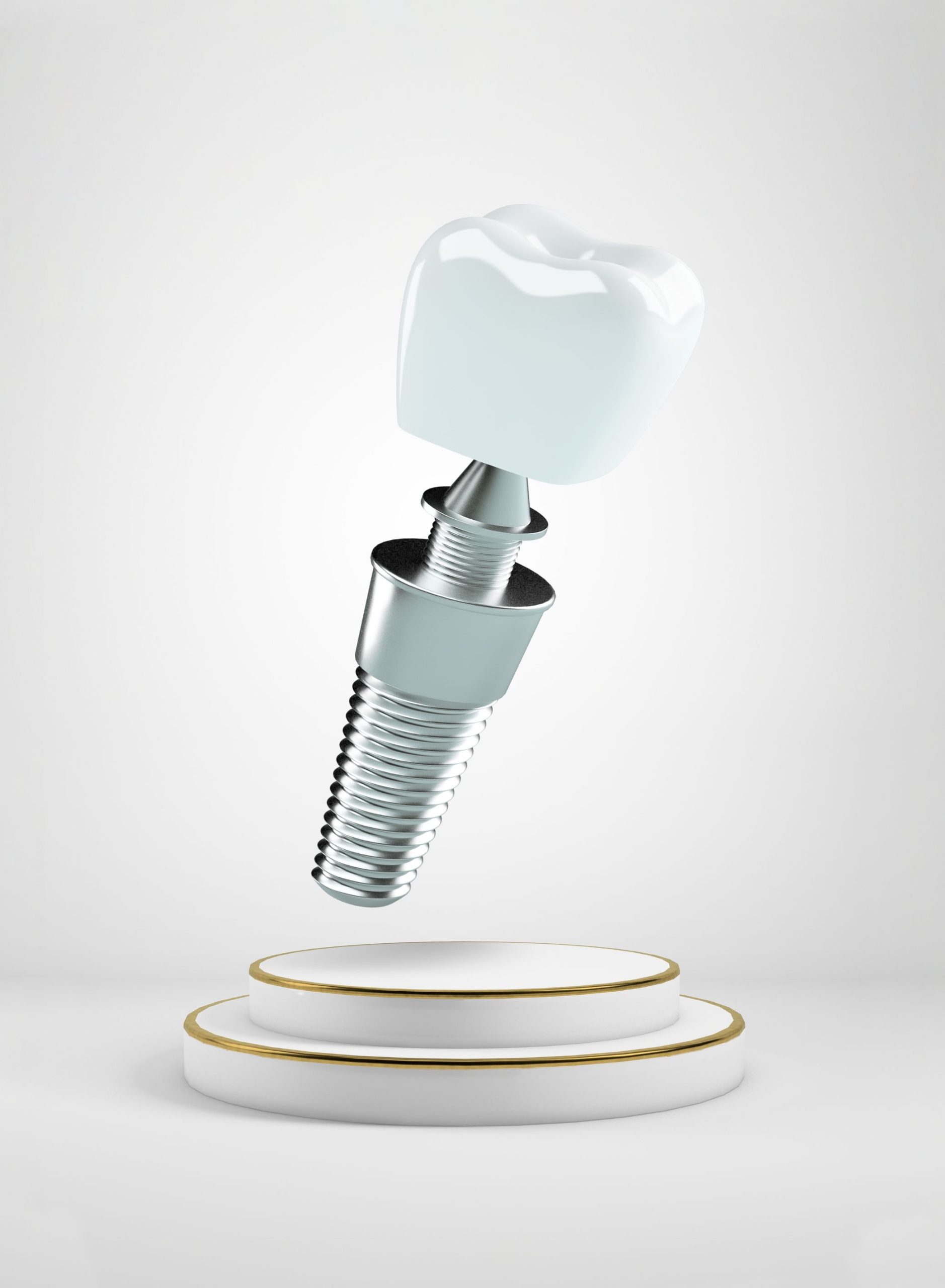 Zubni implantat je mali, biokompatibilni titanski vijak koji se minimalno invazivnim, bezbolnim kirurškim zahvatom ugrađuje izravno u maksilarnu ili mandibularnu kost (ispod desni). Nakon uspješnog srastanja s kosti, implantat služi kao savršena zamjena za korijen prirodnog zuba i omogućuje punu funkciju žvakanja.